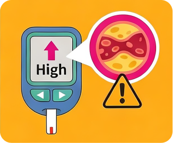 - 高血糖水平會令血管壁更易出現動脈粥樣化, 從而增加心臟病發及中風機會。
